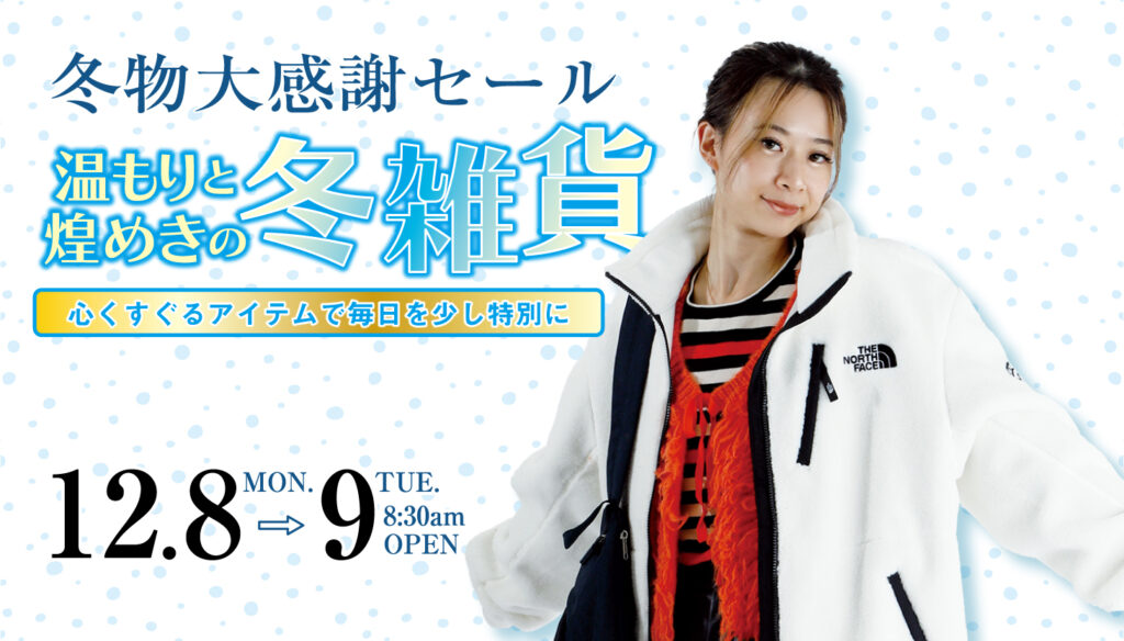 - 冬物大感謝セール12/8~9 温もりと煌めきの冬雑貨 心くすぐるアイテムで毎… 続きを読む: 冬物大感謝セール