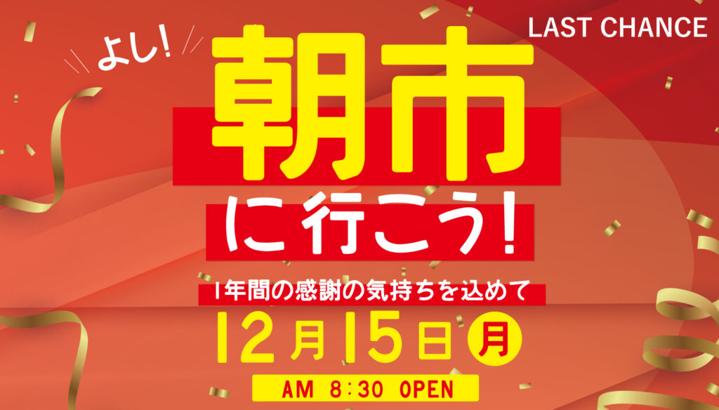 - よし!朝市に行こう!12/15~ LAST CHANCE 1年間の感謝の気持ちを… 続きを読む: よし!朝市に行こう!