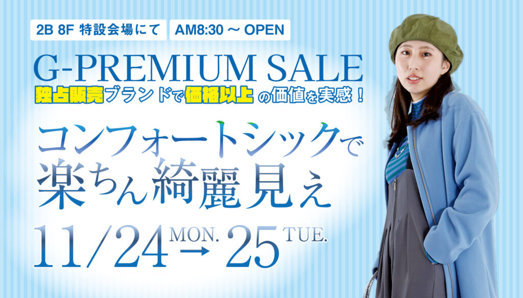 - G-PREMIUM SALE11/24~25 独占販売ブランドで価格以上の価値を実感! … 続きを読む: G-PREMIUM SALE