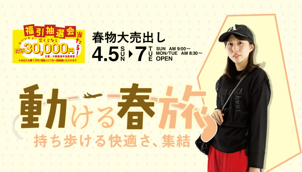 - 福引 春物大売出し4月5日~7日 動ける春旅 持ち歩ける快適さ、集結