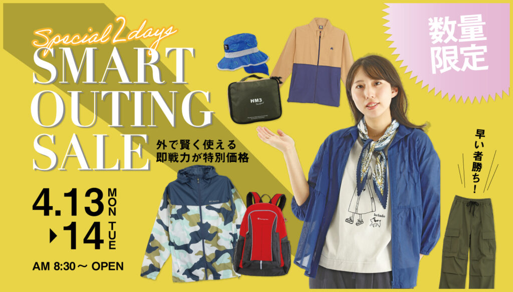 - SMART OUTING SALE4月13日~14日 Special 2days 外で賢く使え… 続きを読む: SMART OUTING SALE